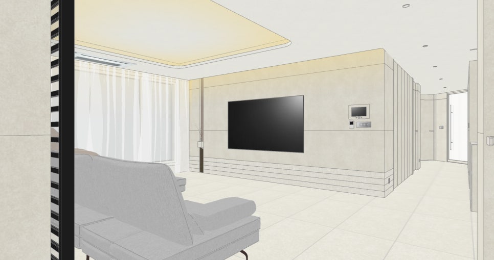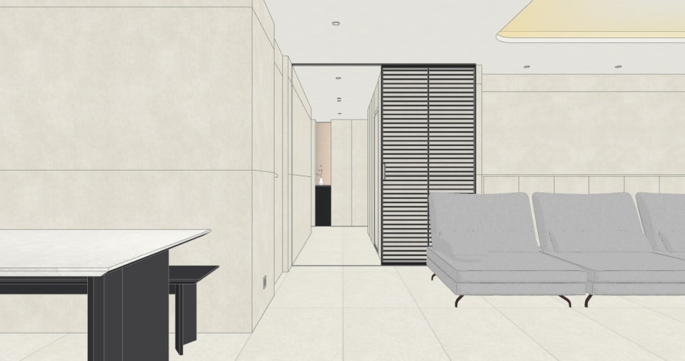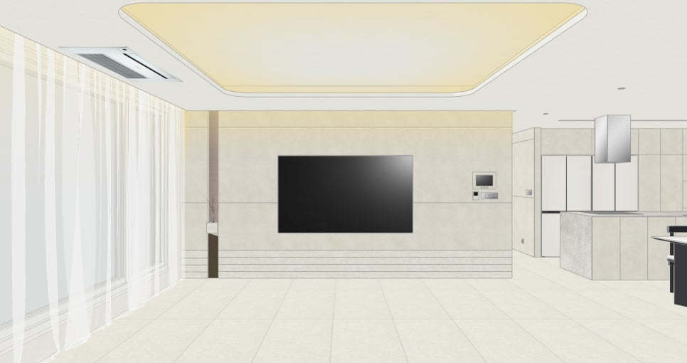 거실은 구조적인 변화보다는 표면 마감과 공간의 흐름 정리에 중점을 두었습니다.