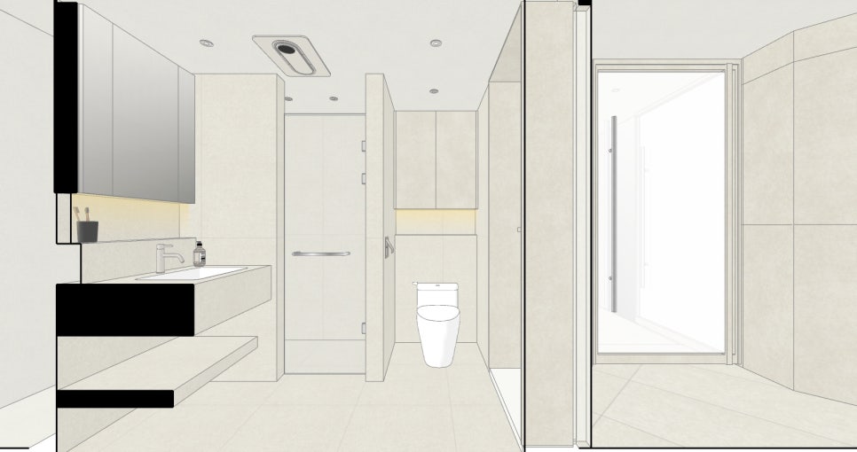 기존 메인룸 욕실의 불필요하게 넓었던 일부 영역을 철거하고