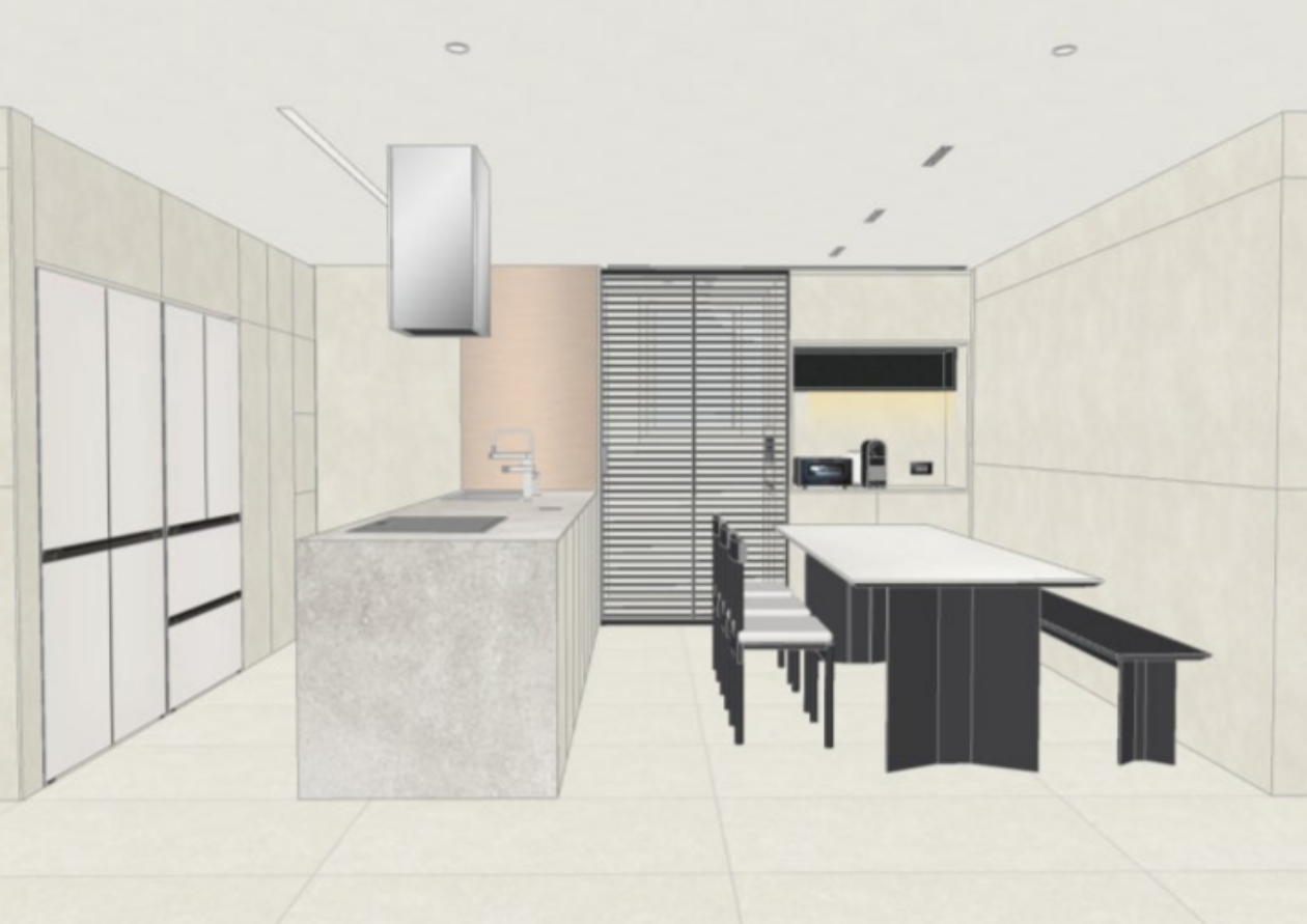 오픈형 대면 구조의 주방을 제안드렸습니다.