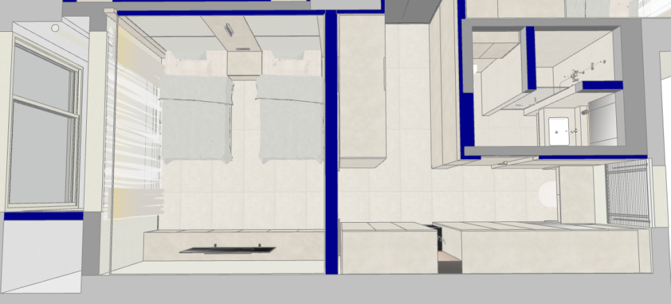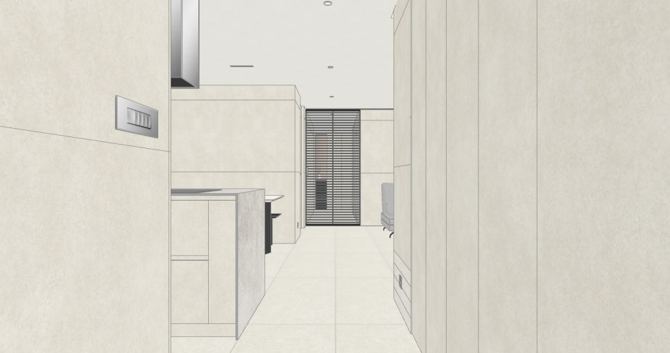 서브룸 2 : 구조를 안쪽으로 재배치하고 복도와 방 양쪽에 수납장을 구성,