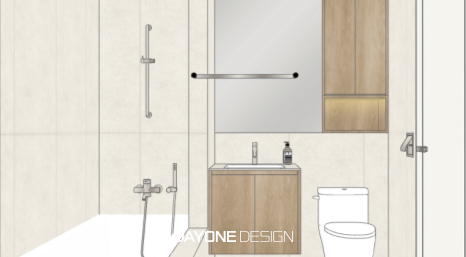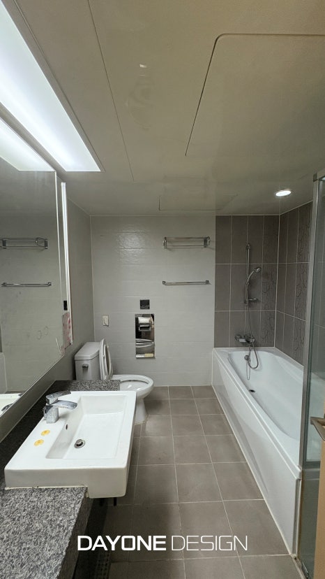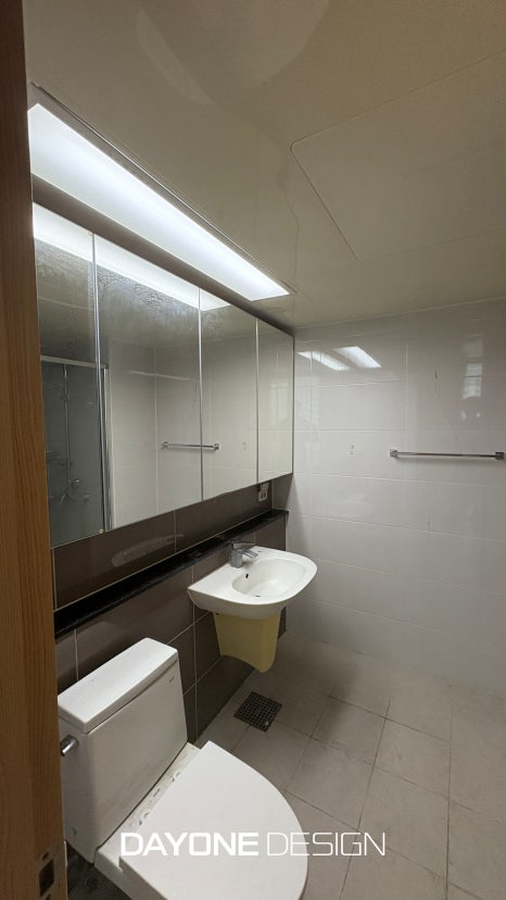 욕실 : 파티션 & 매립 선반으로 효율성 강화