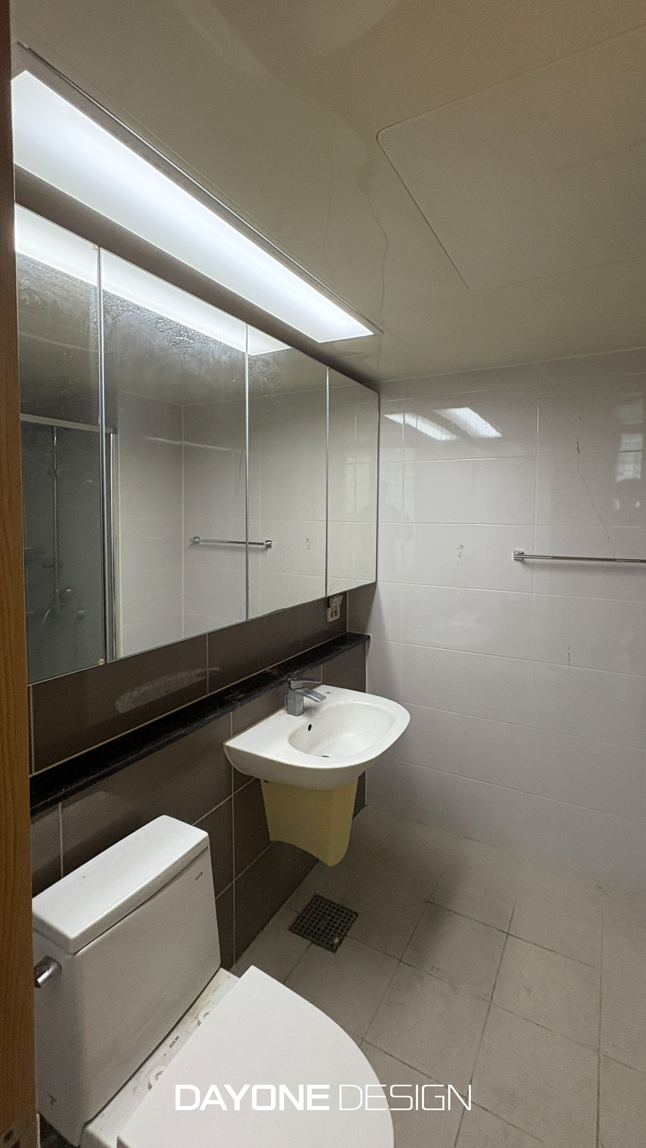 공용 & 메인 욕실 모두 조적 파티션 + 매립 선반 시공